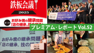 ”コナモン”レポート 日本コナモン協会「鉄板会議2025」開催 「食文化100年継承 鉄板会議2025」開催2022年より開催してきた食文化100年継承・全国鉄板会議が、10月3日に、大阪なんば花月YESTHEATERで開催された。第4回目の今回は、「お好み焼の継承問題 店の継承・技の継承」をテーマに... 2025.10.14 ”コナモン”レポートプレミアムレポート
