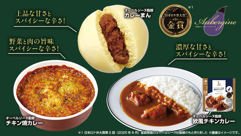 株式会社ローソンは、10 月7日(火)から、全国のローソン店舗(14,051店:2025年8月末時点、「ローソンストア100」を除く)で、映画やテレビの撮影現場での「ロケ弁」として絶大な人気を誇る欧風カレー専門店「オーベルジーヌ」に監修いただいた「欧風チキンカレー」(税込430円)、「チキン焼カレー」(税込599円)、「カレーまん」(税込215円)を発売(※)いたします。