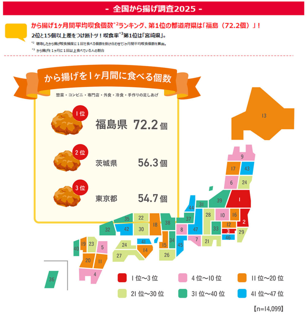 多岐に渡るから揚げを食べている「福島県」が県別ランキングで初の1位に!
