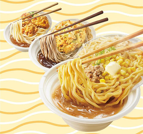 今回発売する「およがせ麺」シリーズは、電子レンジで温めて食べるカップタイプの麺類です。食べる直前に麺を スープに入れることで、麺が余分な水分を吸わず、コシのある食感を楽しめます。ラーメン屋さんのように、提供 直前に麺とスープを合わせる工程が、まるで湯切りをした麺が熱々のスープの中でおよぐように見えることから、 「およがせ麺」というフレーズが誕生しました。