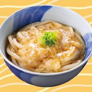 寒い時期に人気の、生姜をきかせた玉子あんかけうどん。ふんわりと柔らかい口当たりのかき玉に、ねぎを盛り付けた彩りもよい商品。