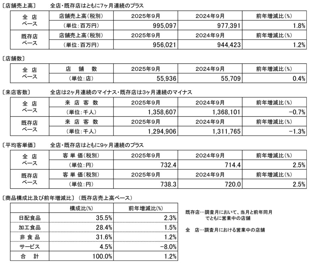 ・店舗売上高:全店・既存店はともに7ヶ月連続のプラス
