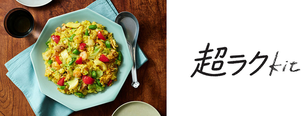 概要:野菜の旨みがぎゅっと詰まったサフラン風ソフリットを使って、パエリア風の味わいを手軽に楽しめる超ラクKitです。野菜とたんぱく、ごはんがこれ一皿で摂れ、包丁を使わずに作れるので、忙しい日のランチにもおすすめです。