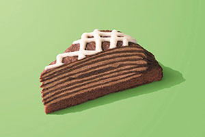 【内容】チョコクリームとチョコダイスを巻き込んだクロワッサンに、チョコマカロン生地を絞って焼き上げました。サクッとした食感とチョコの味わいが楽しめるスイーツパンです。