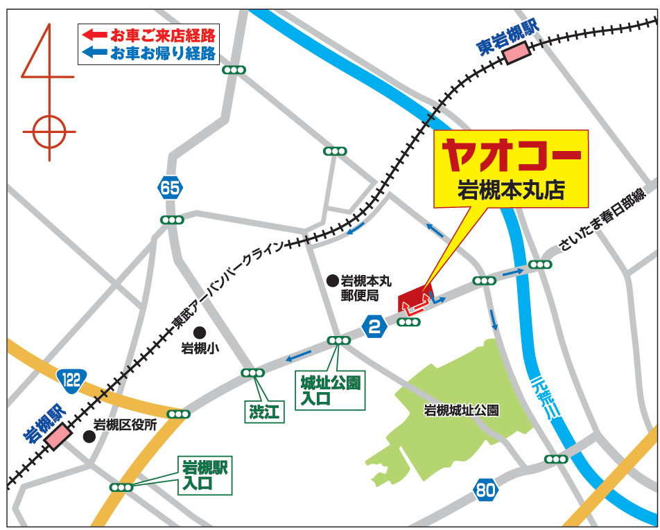 〈ヤオコー岩槻本丸店までのアクセス〉