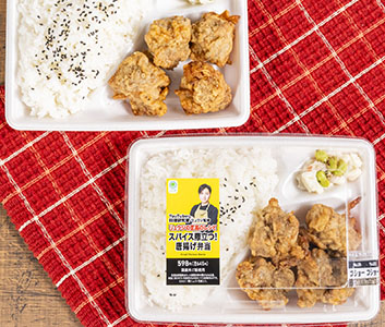 【内容】「ナツメグ・クミン・オールスパイス」を使用した、スパイシーな唐揚げに、「花椒・ブラックペッパーなど」をまぶした、スパイスの香る唐揚げ弁当です。別添の「黒コショウ」でさらにスパイス感を調整できる仕立てです。