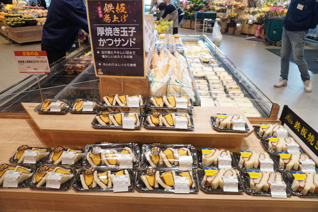 ヤオコーの得意な鉄板を使用した厚焼き玉子かつサンド。