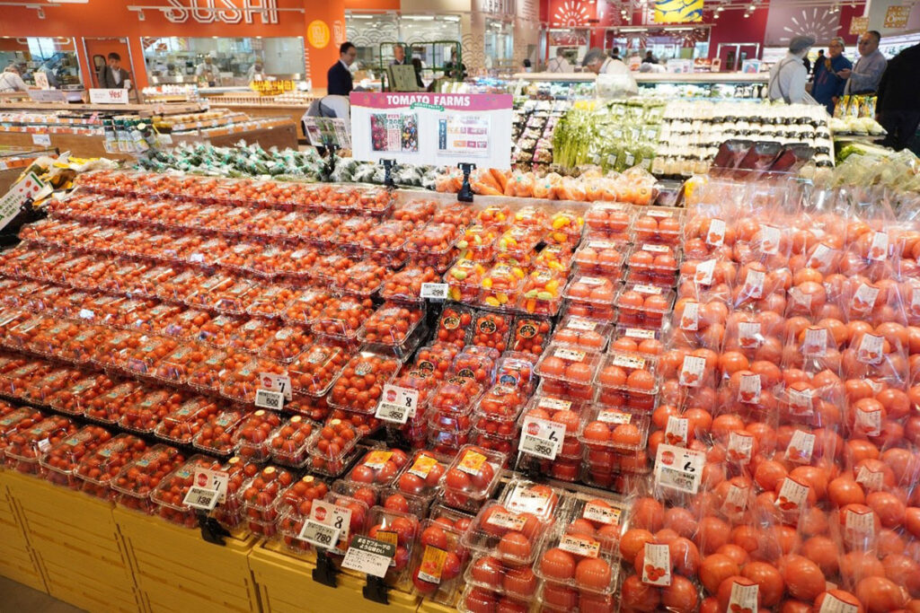 青果は、美味しさにこだわった「木熟トマトシリーズ」や地産トマトの品揃えを充実させ、地域一番のトマト売場を実現。地元野菜コーナーも展開。
