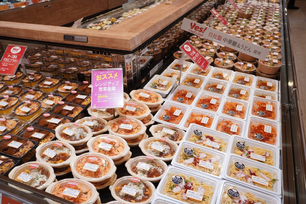 デリカは、ランチタイムで米飯中心に出来立ての商品を提供し、ランチニーズに応えていく。ヤオコーでしか味わえない美味しさを提供する。