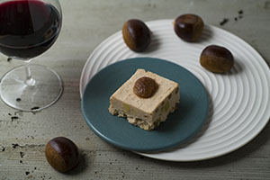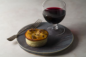ゴルゴンゾーラの香りと風味、無花果の甘みのバランスが取れたチーズケーキです。サクサク食感の塩クッキー生地の上に無花果を並べ、その上から、クリームチーズや卵、純生クリーム、イタリア産のゴルゴンゾーラを使用した濃厚なチーズケーキ生地を流し入れ、トッピングに胡桃をのせました。ゴルゴンゾーラの塩味と上からかかっている蜂蜜の甘みのバランスが取れた、奥深い味わいに仕上げました。プチプチとした無花果やトッピングのカリカリとしたくるみの食感も楽しい一品です。