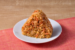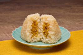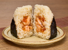 香ばしく炙ったアトランティックサーモンのほぐし身といくら醤油漬を旨み豊かな醤油入りだしごはんのおにぎりの中具に入れ、はらこ飯風に仕上げました。海の幸の風味とだしと醤油のまろやかな味わいが調和したおにぎりです。