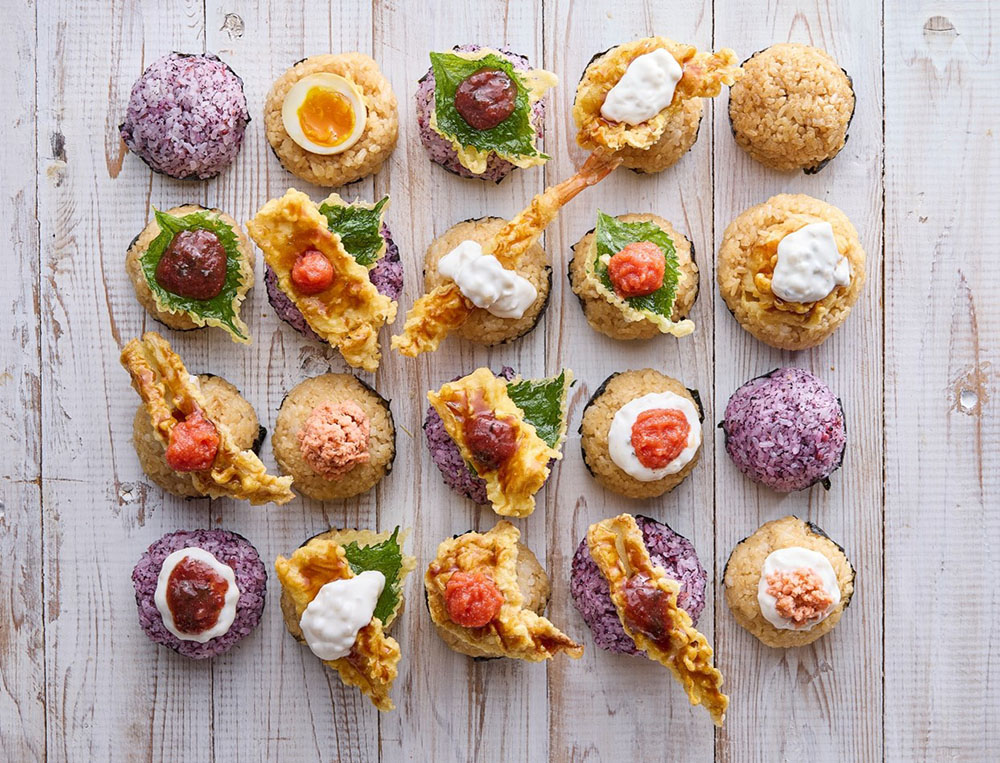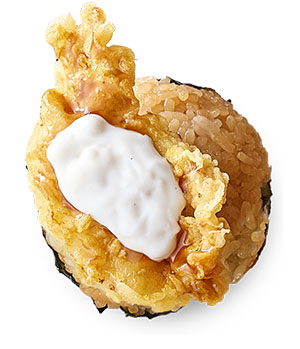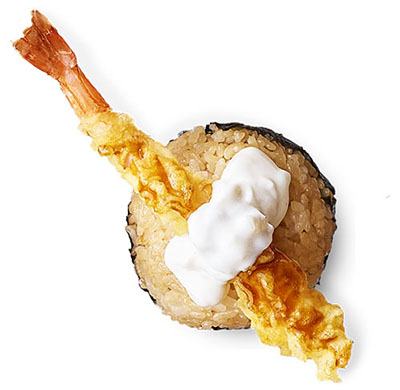 海老天に自家製のタルタルを合わせた、旨みとクリーミーさが口いっぱいに広がるおむすびです。