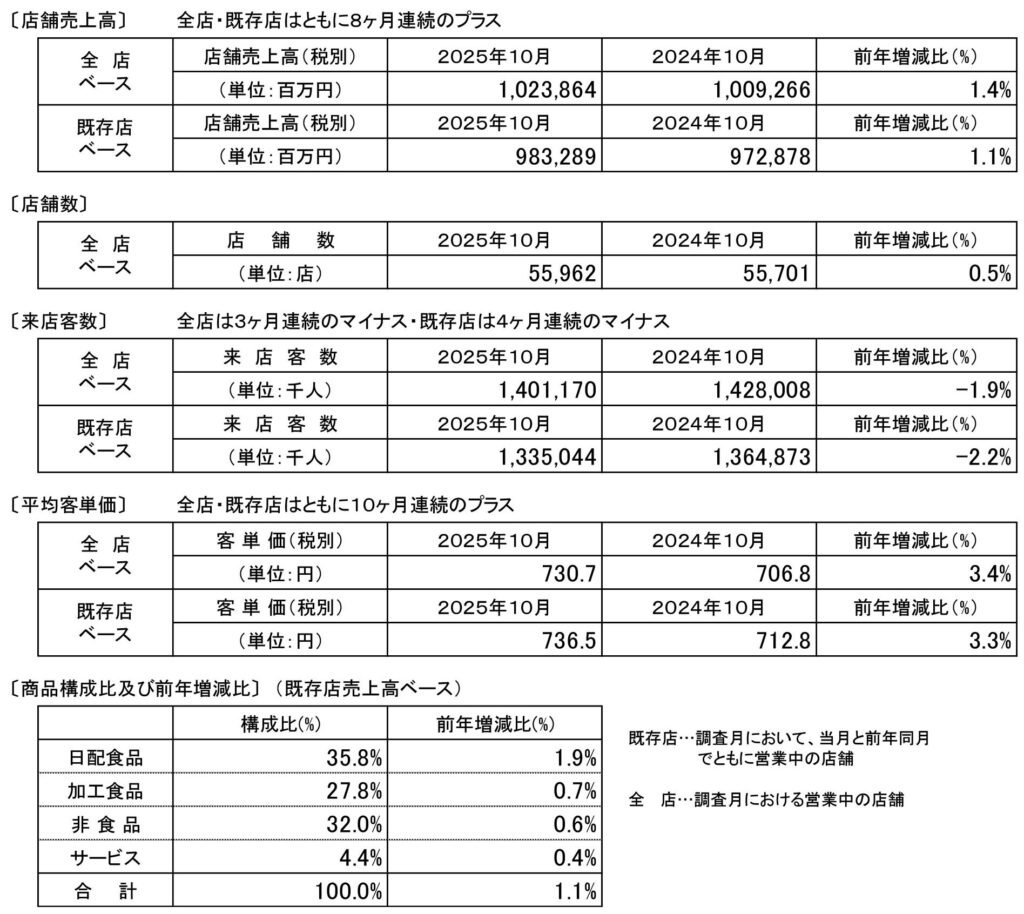 今月は気温の低下によりカウンター商材、ホット飲料、カップ麺が好調だったことに加え、高付加価値商品の展開をはじめとする販促施策により客単価が伸び、全店・既存店ともに売上高が前年を上回る結果となった。また、おにぎり、菓子、玩具も好調に推移した。