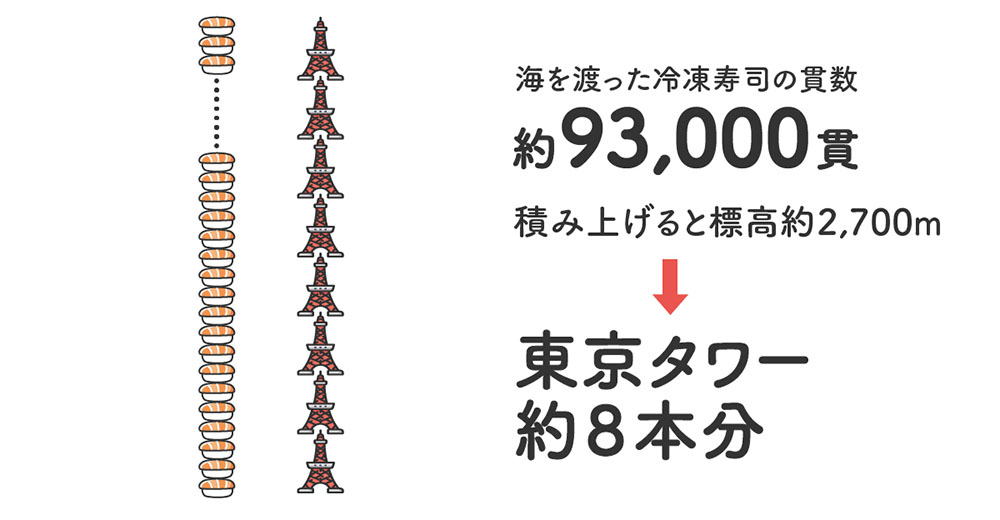 ・海外に渡った冷凍寿司の総貫数:約93,000貫