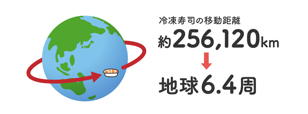 ■冷凍寿司が移動した距離:256,120km(地球6.4周分)
