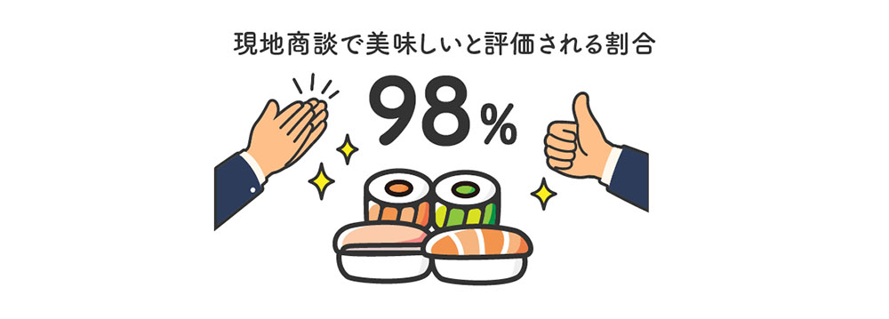 ・現地商談での評価:美味しいと評価された割合:98%(50回中49回)