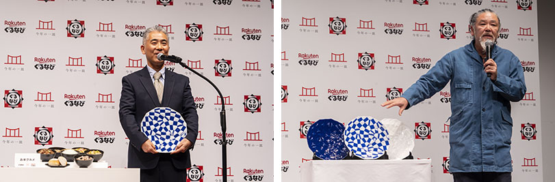 また、記念品の「野老組市松紋様皿 有田焼2025(ところくみいちまつもんようざら ありたやきにせんにじゅうご)」は、本年も美術・建築・デザインの境界領域で活躍されている野老朝雄(ところ・あさお)氏がデザイン。作品に込めた想いを野老氏は、「市松の紋様は60個の大中小の四角でできており、多様な組み合わせが作れる紋様です。ずっとやりたくてできなかった紋様を描かせていただきました」とお話されました。