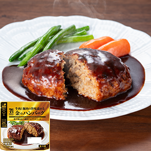 牛肉・豚肉それぞれの旨味が溢れるジューシーなハンバーグです。ハンバーグの肉汁がデミグラスソースと絡むことで、ソースの深い味わいが引き立ちます。