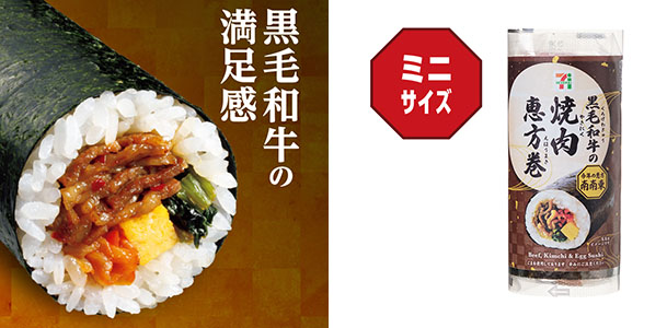 本年は、うなぎの蒲焼と厚焼き玉子を使用した「うなぎと玉子の恵方巻」をはじめ、韓国風海苔巻を恵方巻にした「キンパ恵方巻」が新登場。その他、黒毛和牛を使用した「黒毛和牛の焼肉恵方巻」や、定番商品の、7種類の具材を使用した「七品目の幸福恵方巻」、海老マヨネーズとツナマヨネーズが両方入ったロングセラー商品「サラダ恵方巻」など、計7品の恵方巻をラインアップしております。