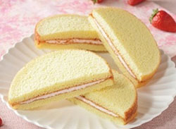 ほどよく酸味のきいたいちごジャムを使用したなめらかな口当たりのいちごクリームを、ふんわりとしたスポンジ生地で挟みました。