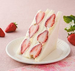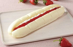 いちごの果肉入りのソースとすっきりとした味わいのミルクホイップを、ふわふわとした食感のパンに挟みました。いちごの甘酸っぱい味わいと果肉を楽しめます。