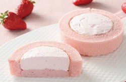 しっとりとした口どけのいちご生地に、いちごの香りが広がるいちごクリームとさっぱりとした甘みが特長のいちごホイップクリームを巻いたロールケーキです。