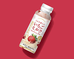【内容】ごろごろいちご果肉とコク深いミルクの味わいが楽しめるいちごミルクです。