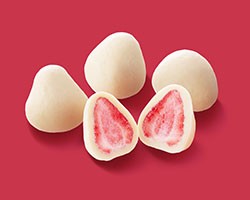 【内容】マシュマロのようなふんわり食感のいちご味のグミに、優しい甘さのホワイトチョコをコーティングしました。