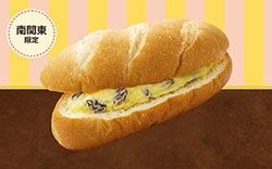 【内容】歯切れのいいソフトフランスパンに、バター入りクリームとラム風味レーズンを混ぜたクリームをサンドしました。