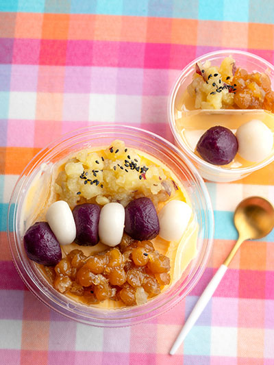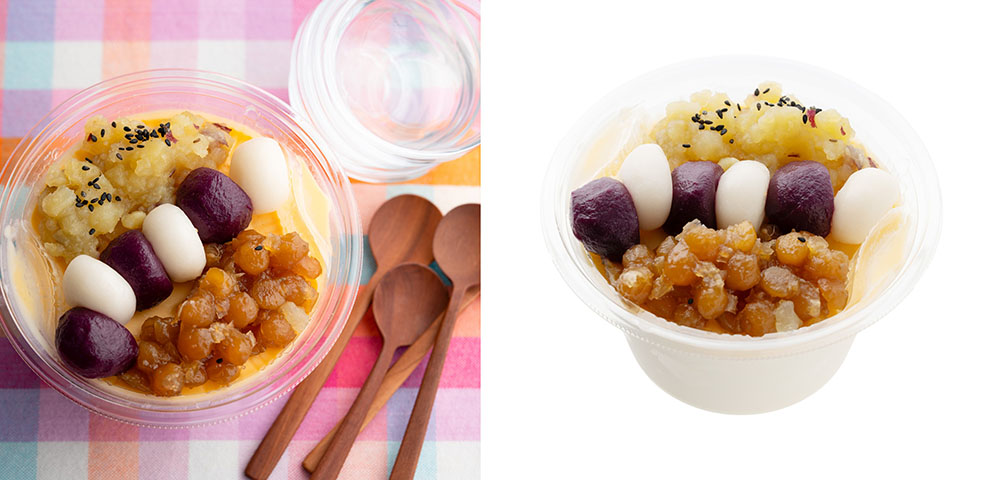 今から10年前、ココナッツミルクの中にイモや豆などが入ったお汁粉風のスイーツを食べた時、その意外な組み合わせに衝撃を受けたことが「モーモーチャーチャー」開発のきっかけでした。「成城石井風にアレンジしたら面白いのでは」と考え出すと次々とアイデアが浮かび、商品化に至りました。実はこのマレー風のお汁粉は「麼麼咋咋(ボボチャチャ)」という名前だったのですが、「モーモーチャーチャー」と聞こえたことからこの名前を名付けました。インパクトがありつつも、可愛らしいネーミングがお客様にとって印象に残るものになったのではないかと感じています。商品開発の際には、見た目や味わいのバランスを追求し、素材それぞれにパティシエとしてのオリジナリティを詰め込みました。
