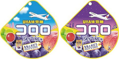 JALの機内で人気の飲料「スカイタイム」と独特の食感が特長のグミ「UHA味覚糖 コロロ」のコラボレーション商品を展開。