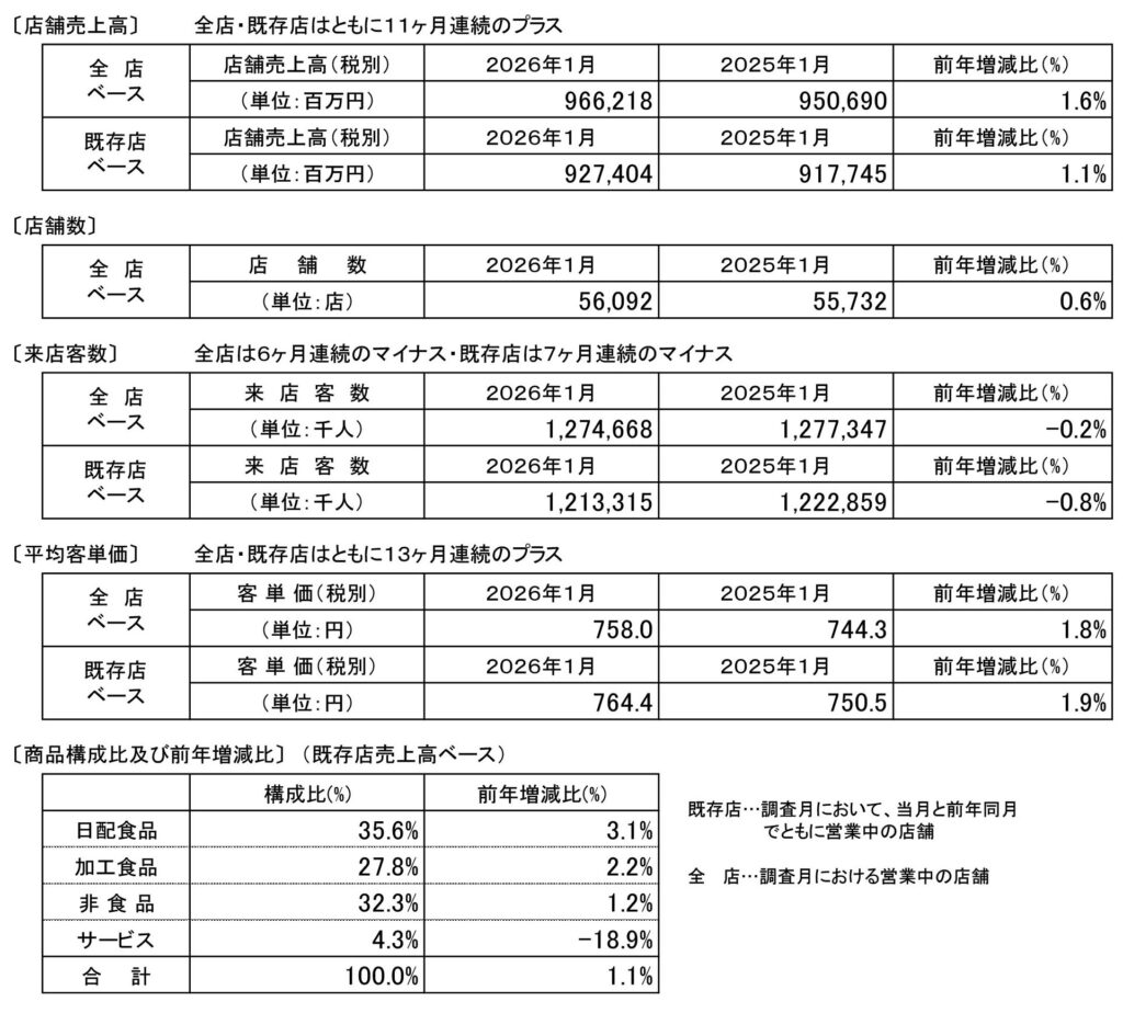 今月はフェアやコラボ商品をはじめとする販促施策等により客単価が伸びたことに加え、昨年に比べ気温が低かったことから中華まん、カウンターコーヒー、ホット飲料が好調に推移し、全店・既存店ともに売上高が前年を上回る結果となった。