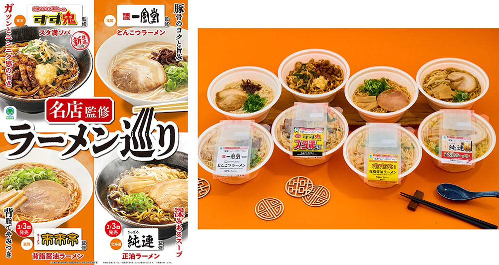 前回発売時に5週連続で温かい麺カテゴリで売り上げ数1位を獲得した「博多一風堂」、カップ麺や冷凍食品でご支持をいただいている「すず鬼」、ファミリーマートではおなじみの「来来亭」、「さっぽろ純連」、それぞれの監修のもとで、レンジで温めても美味しい麺やスープを目指し、何度も試作を重ねて出来上がった自信作揃いです。店舗にお越しいただくのが難しい方も、お近くのファミリーマートで気軽に有名店の味をお楽しみいただけます。
