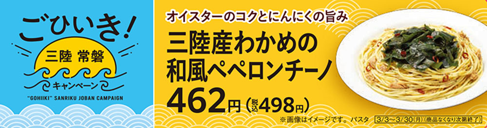 株式会社ファミリーマートは、継続して取り組んでいる5つのキーワードの1つである「『あなた』のうれしい」の一環として、経済産業省が中心となって実施する「ごひいき!三陸常磐キャンペーン」に賛同し、2026年3月3日(火)から、「三陸常磐食べようフェア2026」コラボ商品として、三陸・常磐の海の幸を使用した商品を、全国のファミリーマート約16,400店にて順次展開いたします。