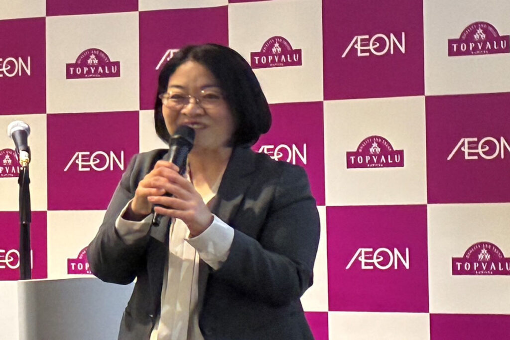 イオン㈱取締役執行役副社長商品担当兼イオントップバリュ㈱代表取締役社長の土谷美津子氏より、2026年度のトップバリュに関する取り組み方針について説明があった。