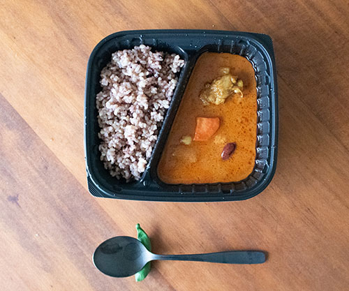 ルウは重すぎず、後味は軽やか。スパイスの奥行きがありながらも日常的に食べやすい設計で、もちもちとした寝かせ玄米®との相性を追求しました。噛むほどに広がる玄米の甘みが、スパイスの風味を引き立てます。