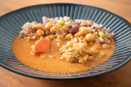 スパイス香る本格派「寝かせ玄米®とひよこ豆のチキンカレー」