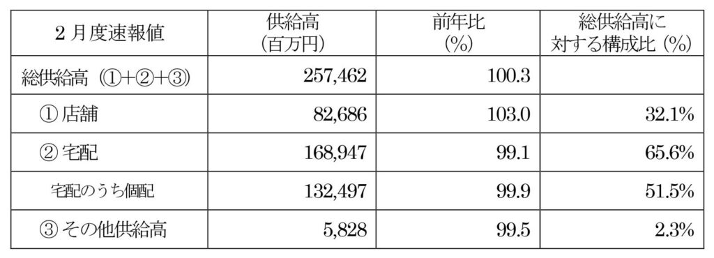 ・2月度の総供給高は、100.3%で前年超え