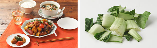 概要:別添のカット青梗菜で仕上げる、彩り豊かな本格黒酢酢豚。一緒に温めるだけで、まるで作りたてのような食感に。贅沢に使用した4種の野菜が食卓を華やかに彩る一品です。