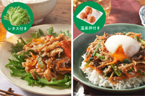 単調な味になりがちな総菜も、レタスや大葉などの野菜や温玉などのフレッシュな食材も別添えしてお届けすることで食べ飽きない