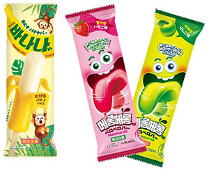ゴールドスター「皮むきバナナバー」「ベロベロバー(いちご味・りんご味)」