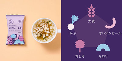 食エネルギー過剰、緊張やストレスが多い環境の方におすすめ。つぶつぶ食感の和漢素材と鶏ガラスープの旨味が特長のフリーズドライスープ。かぶ・セロリ・大麦・オレンジピール・青しそを使用。