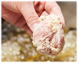 【工夫1:肉の旨みをいかす薄衣】