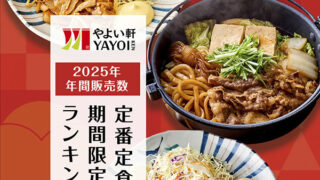 定番定食トップ5&期間限定定食トップ5を大公開!株式会社プレナスは、定食レストラン「やよい軒」を、日本国内にて2025年11月末現在363店舗展開しております。このたび日本国内「やよい軒」の2025年年間販売数ランキングを発表いたします。本...